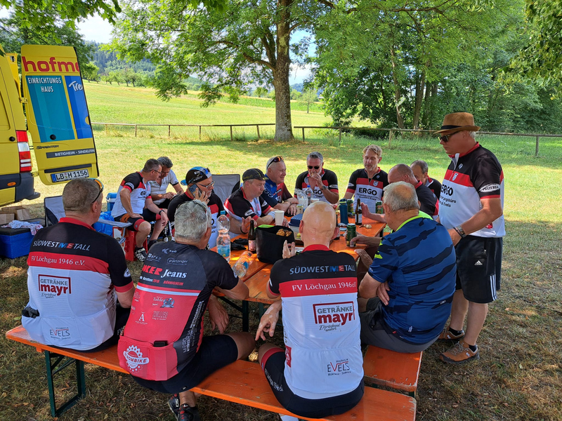 Die Freizeitradler des FV Löchgau starteten am Samstag, 08. Juli 2023 zu Ihrer alljährlichen zweitägigen Radausfahrt. Insgesamt bewältigten die 15 "Bio-" und E-Biker eine Strecke von 225 Kilometern bei knapp 1400 - 1600 Höhenmetern entlang der Murr und Kocher.